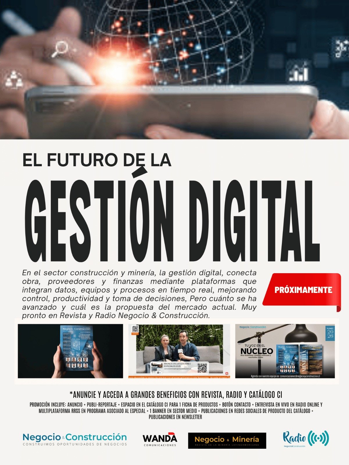 Es por esto que nuestra propuesta integral incluye: Revista Digital, Radio Online, Catálogo CI, Webinars y Eventos virtuales y Marketing Digital.
